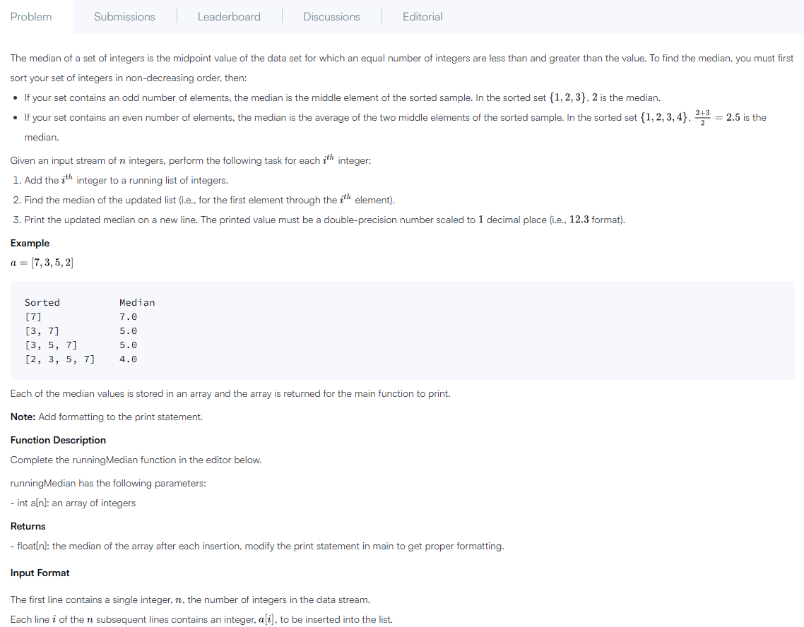 3. Find the Running Median (Hard)